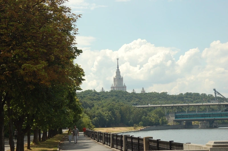 Центральный парк Москвы с велодорожками, кафе и видом на реку
